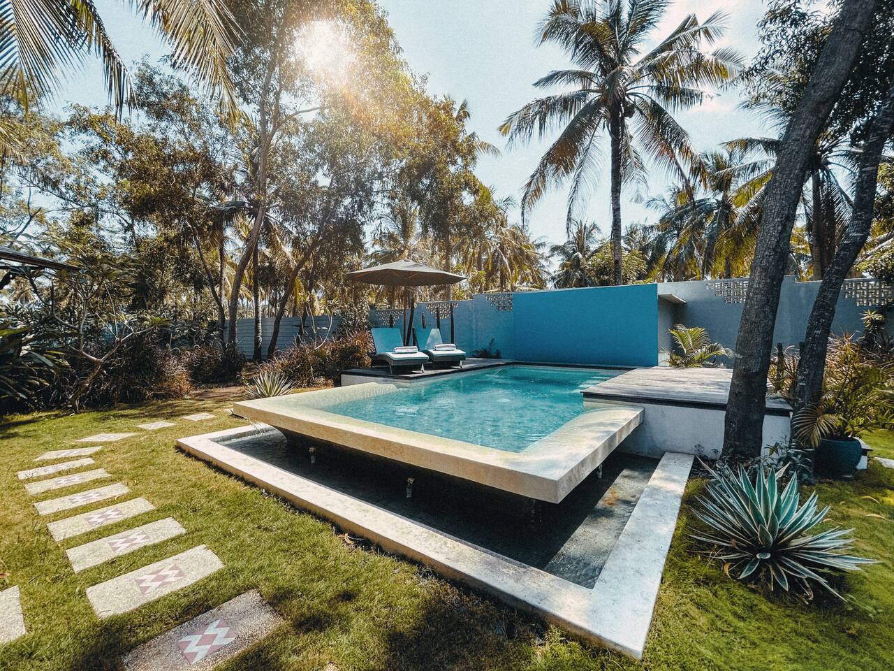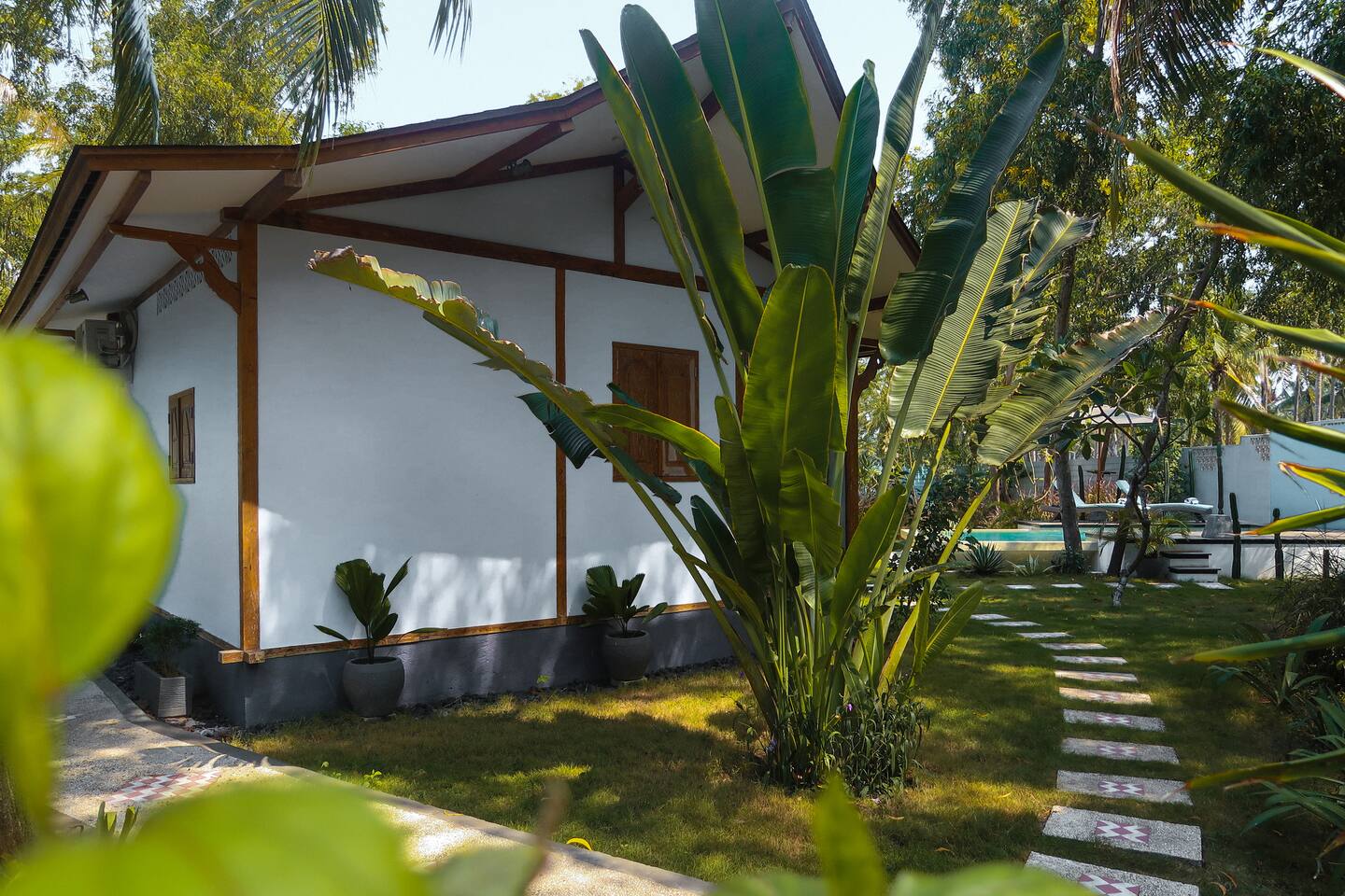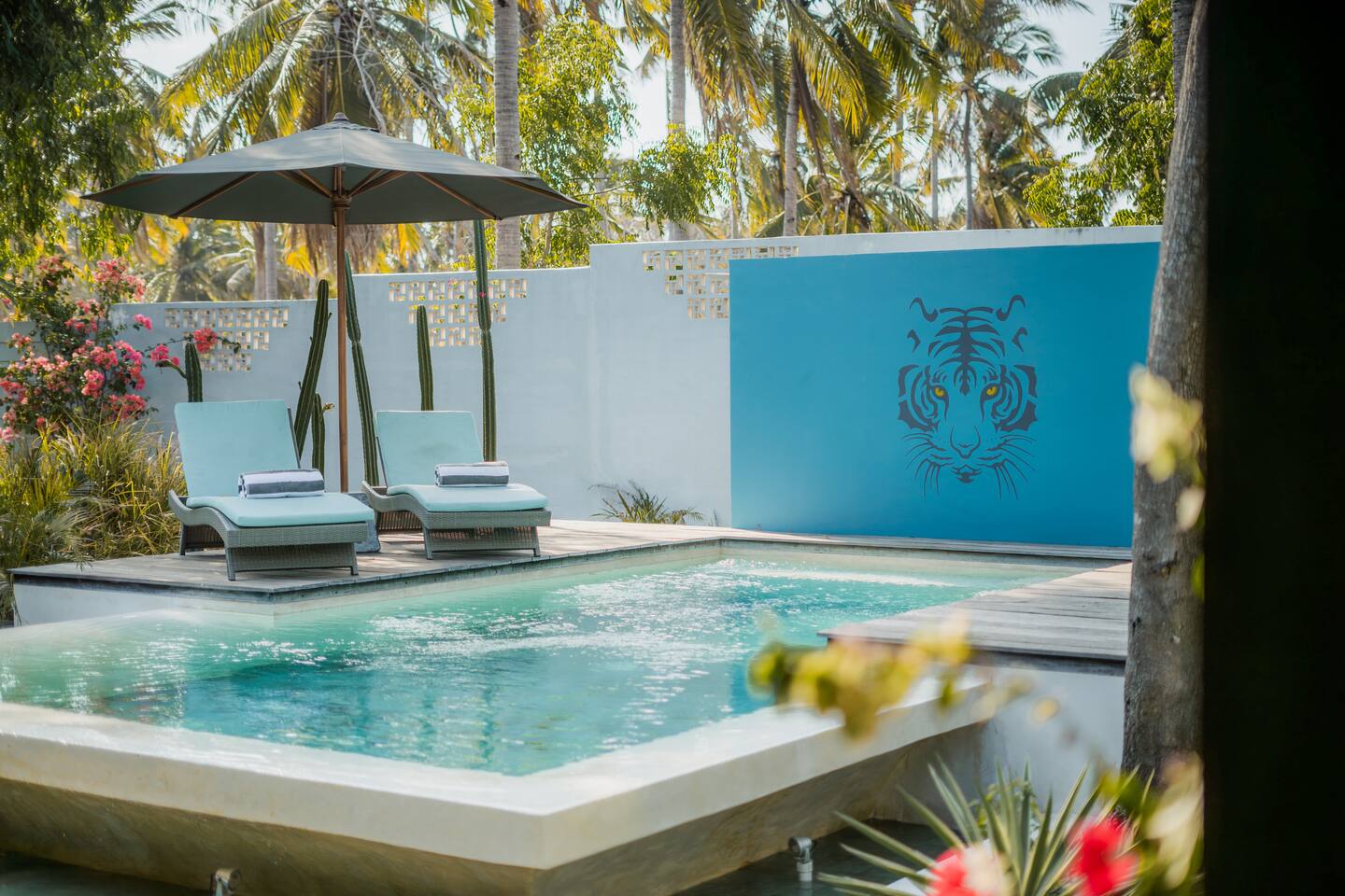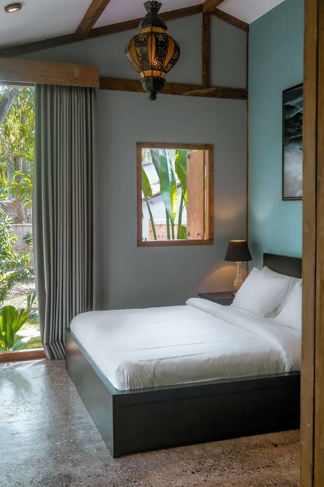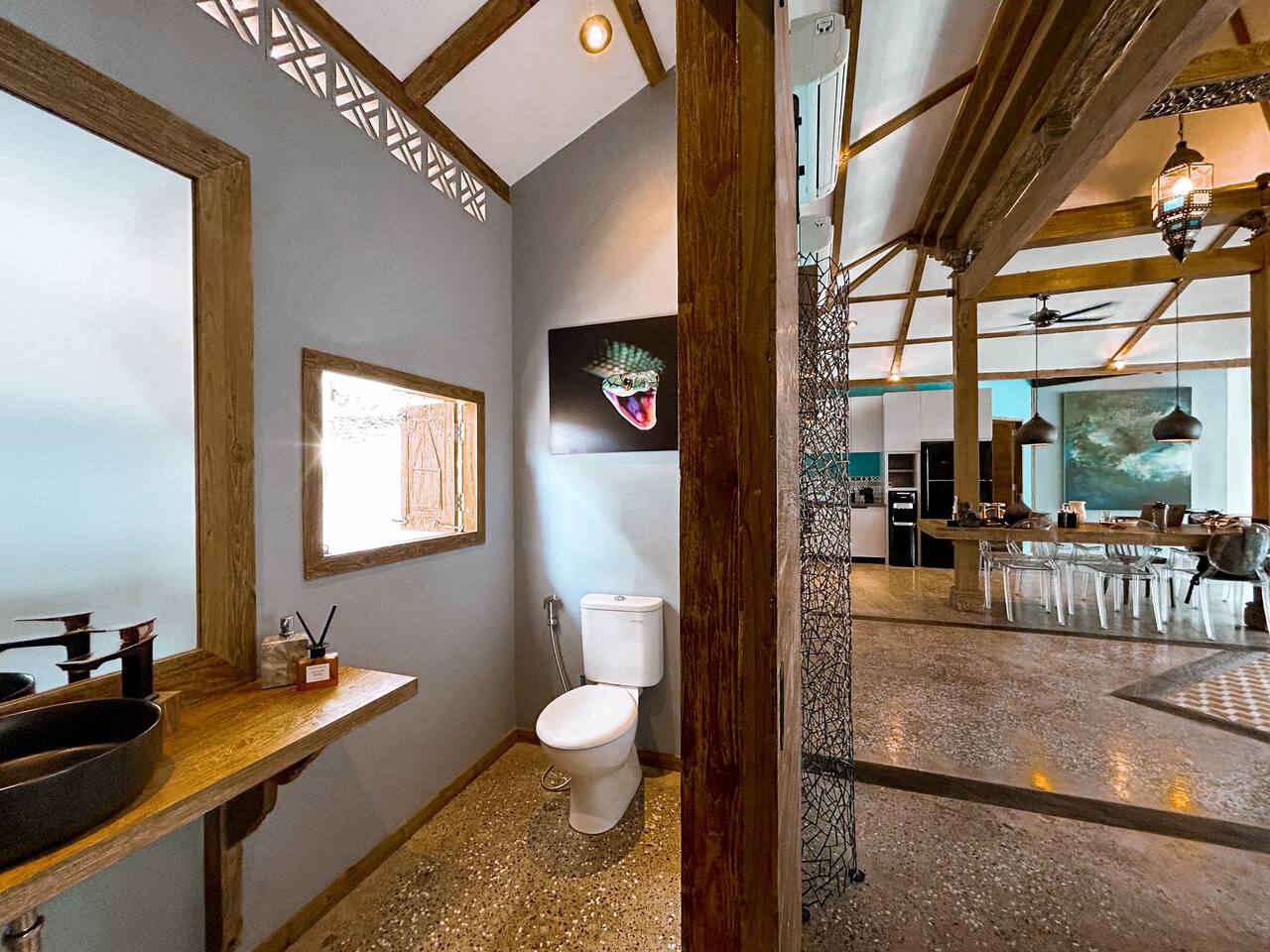Welcome to VILLA HARIMAU on Gili Trawangan. This beautifully repurposed 3-bedroom Joglo house offers the best of both traditional and modern living. The villa is just a 3-minute walk from the beach – close enough to make it feel like your backyard, but far enough that you won’t wake up with a sandcastle in your living room. It’s private, peaceful, and perfect for families, friends, or anyone craving a tropical escape with a little extra quiet.