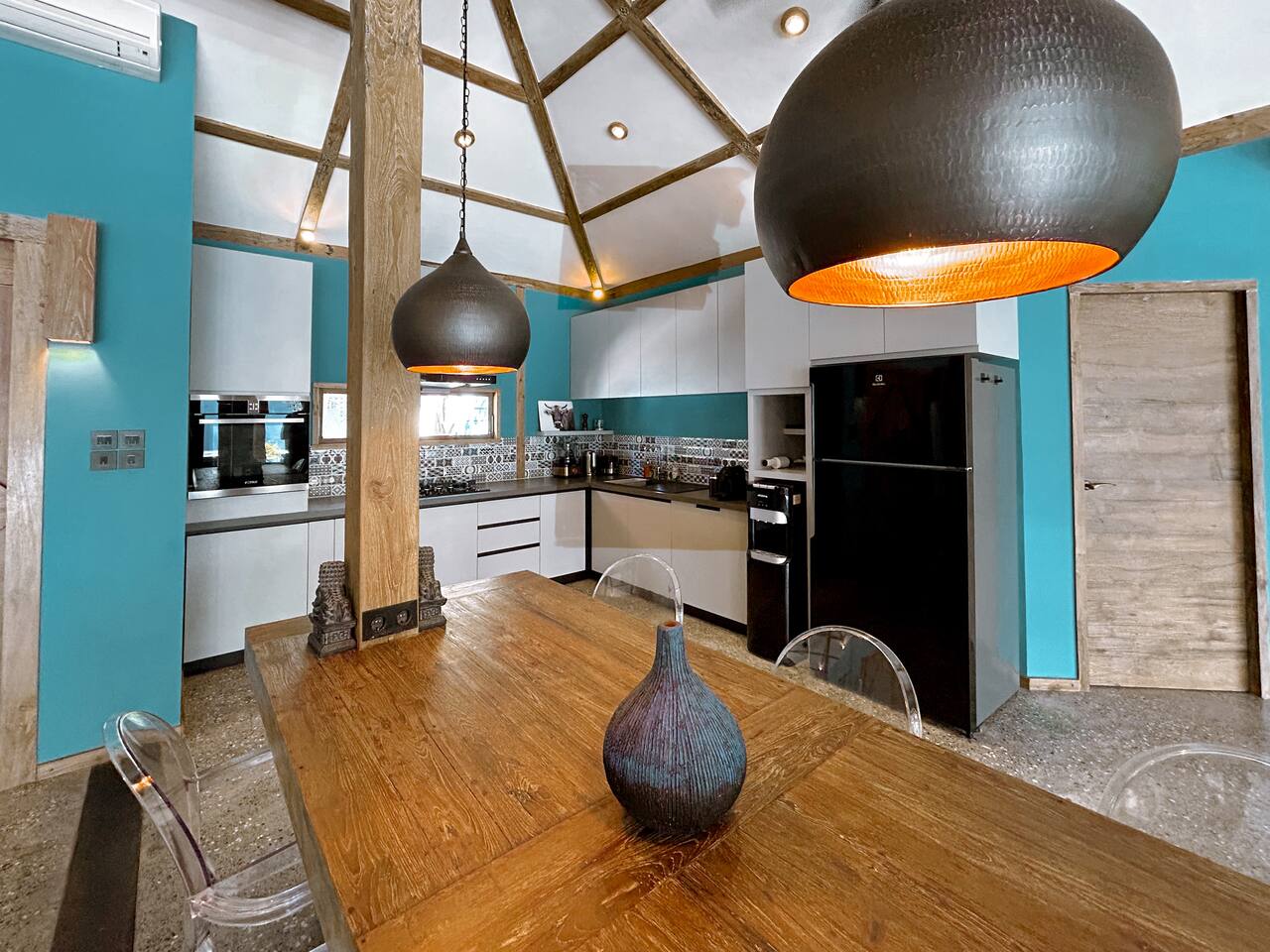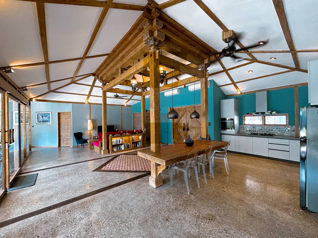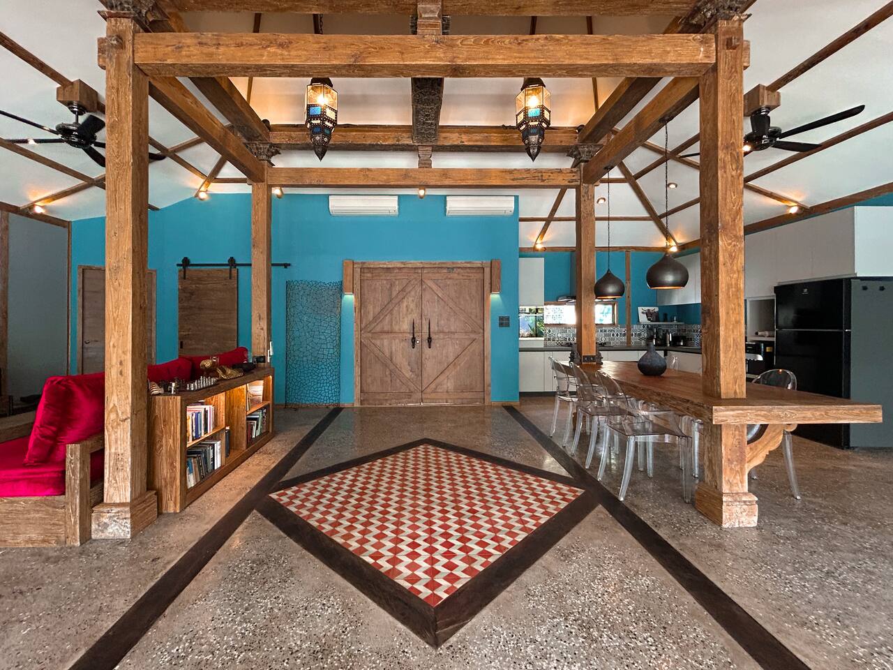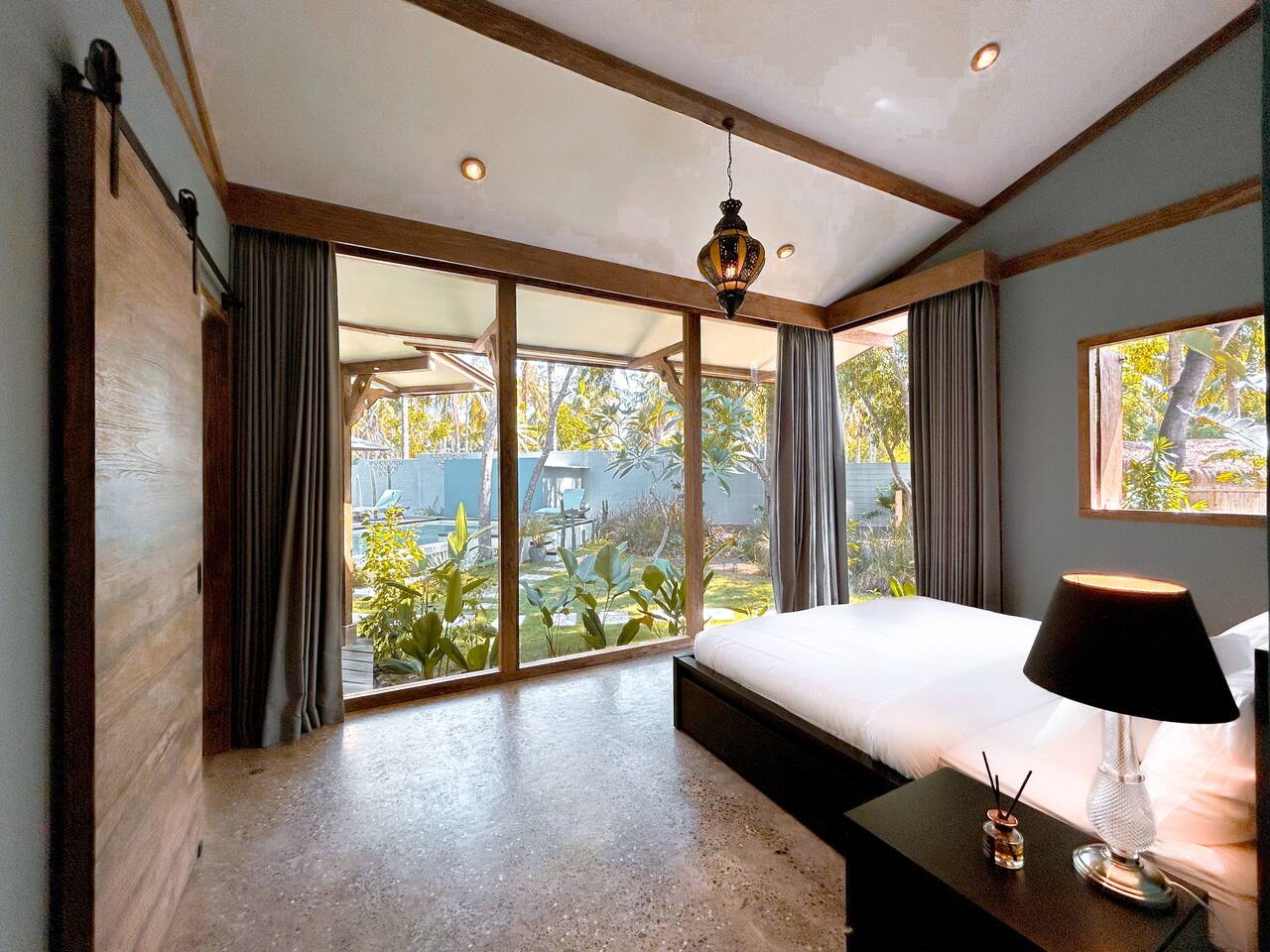 Welcome to VILLA HARIMAU on Gili Trawangan. This beautifully repurposed 3-bedroom Joglo house offers the best of both traditional and modern living. The villa is just a 3-minute walk from the beach – close enough to make it feel like your backyard, but far enough that you won’t wake up with a sandcastle in your living room. It’s private, peaceful, and perfect for families, friends, or anyone craving a tropical escape with a little extra quiet.