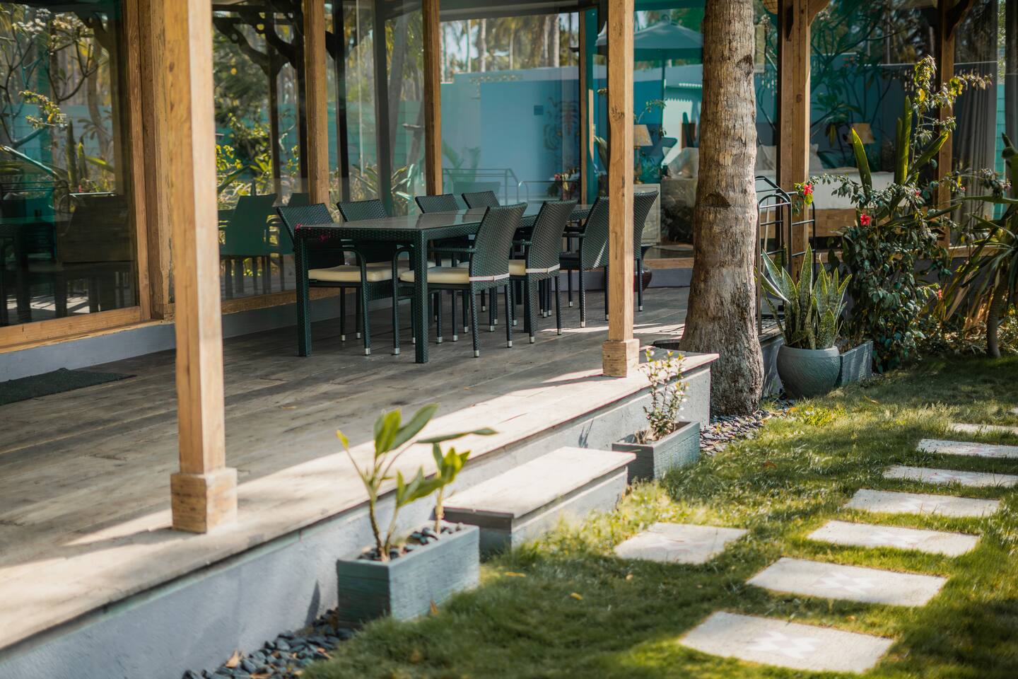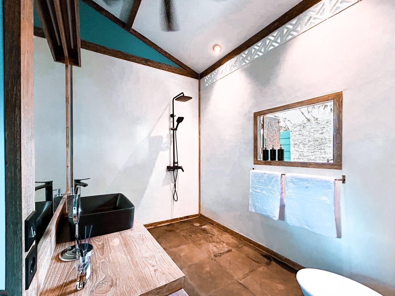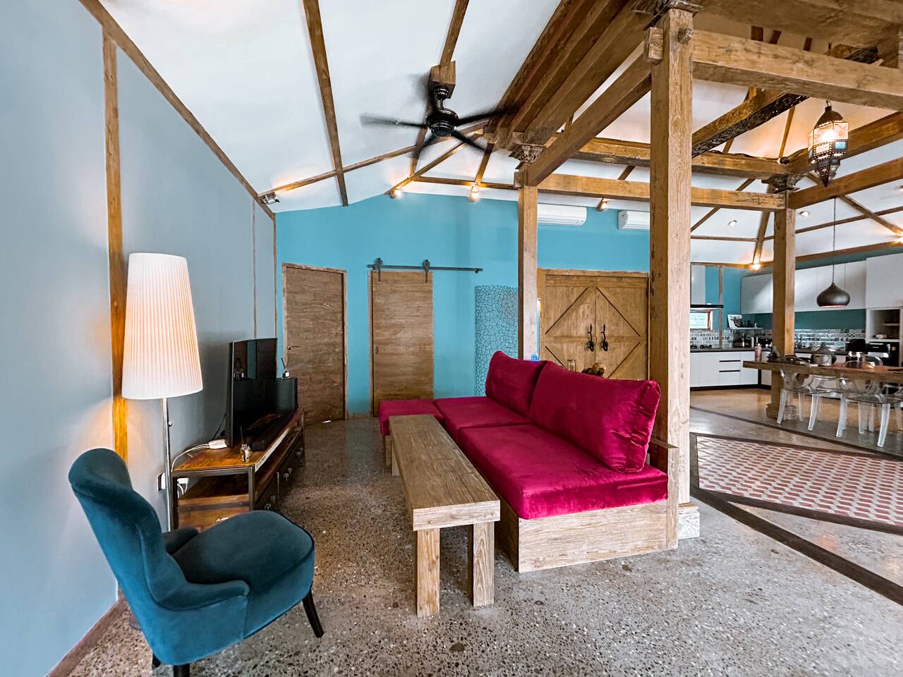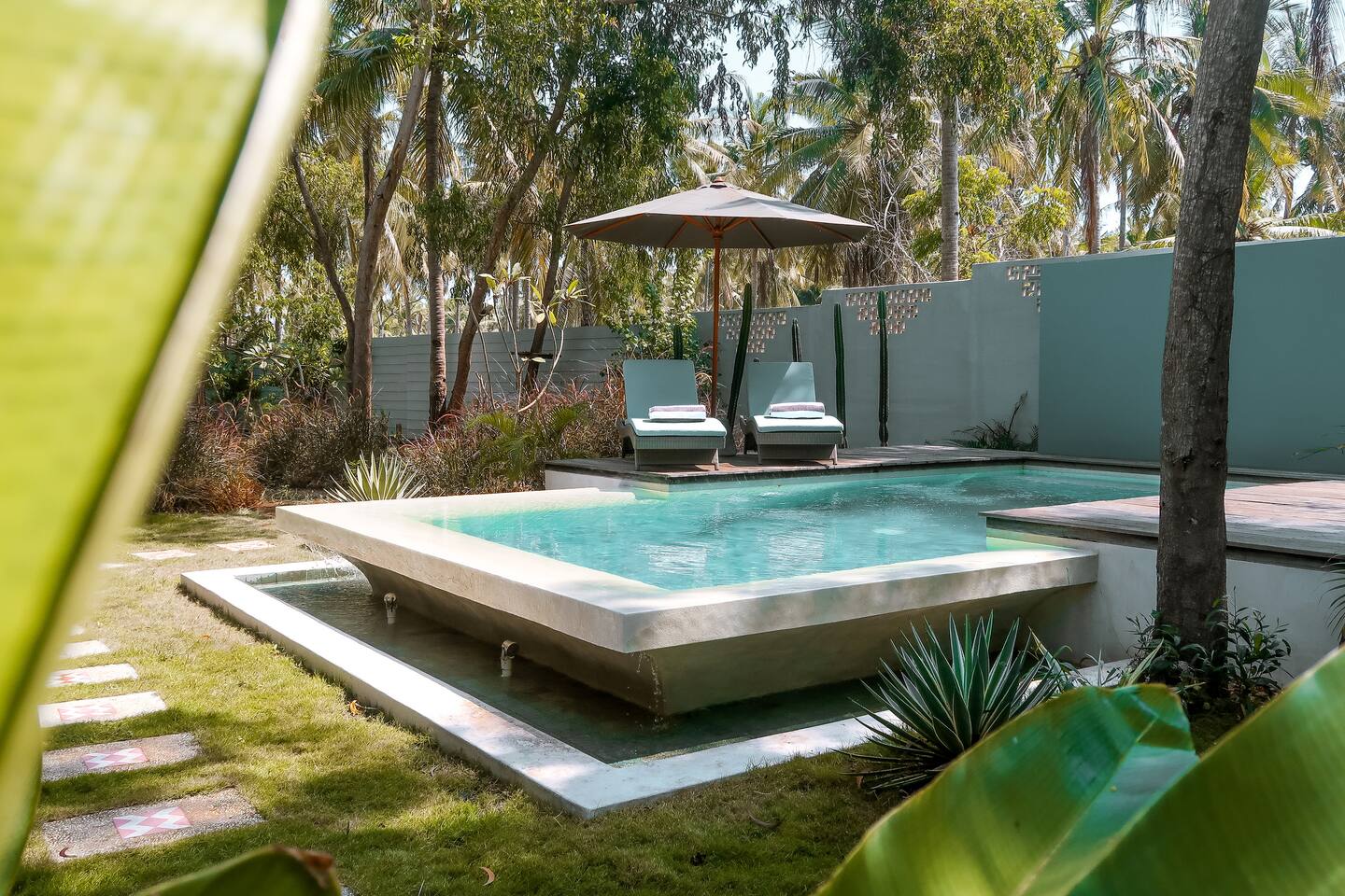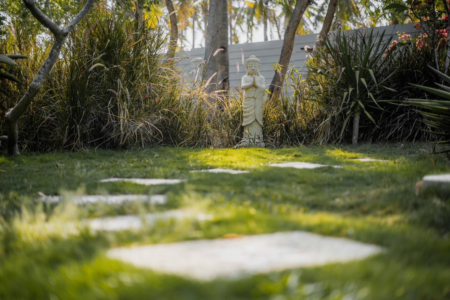 Welcome to VILLA HARIMAU on Gili Trawangan. This beautifully repurposed 3-bedroom Joglo house offers the best of both traditional and modern living. The villa is just a 3-minute walk from the beach – close enough to make it feel like your backyard, but far enough that you won’t wake up with a sandcastle in your living room. It’s private, peaceful, and perfect for families, friends, or anyone craving a tropical escape with a little extra quiet.