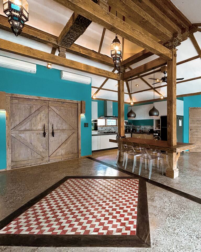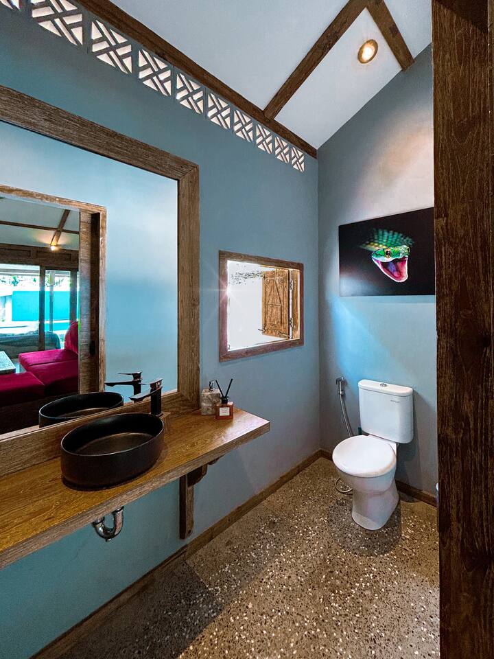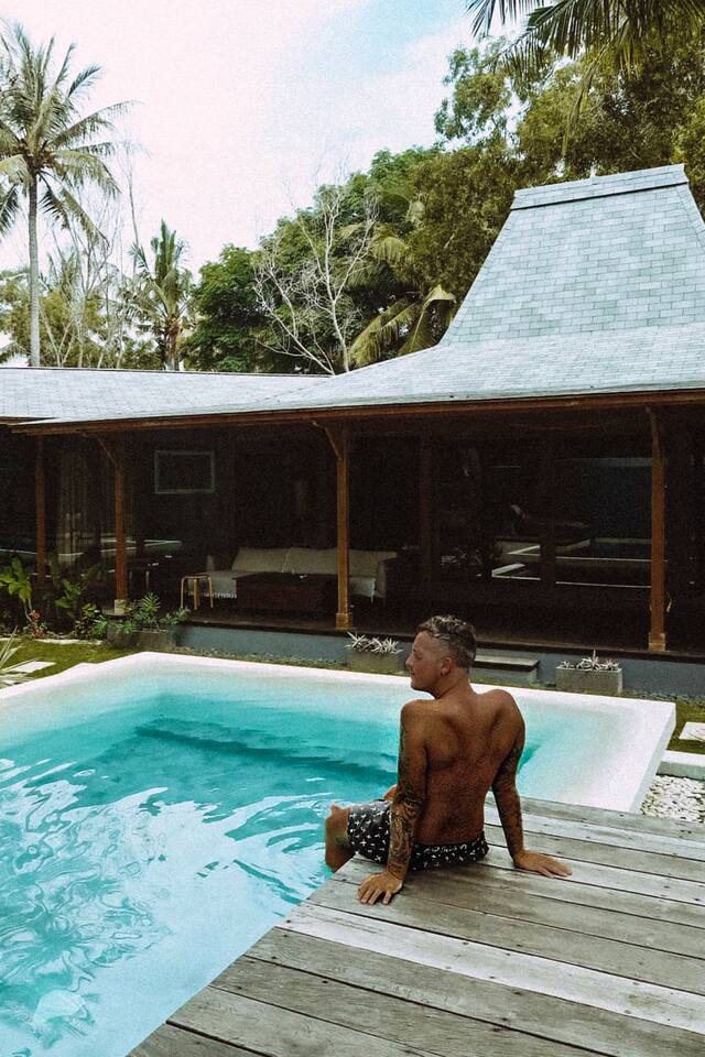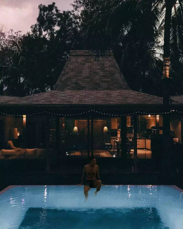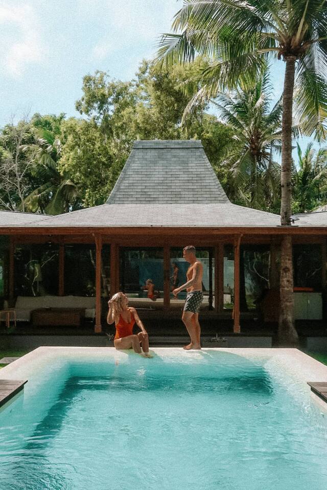 Welcome to Villa Harimau. This beautifully repurposed 3-bedroom Joglo house offers the best of both tropical and modern living. Joglo houses showcase the rich cultural heritage and Experience the unique charm of Javanese architecture, where distinctive design meets deep cultural symbolism – a treasured part of Indonesia's rich history. The villa is nestled in a lush tropical garden, offering a serene and relaxing atmosphere. A highlight of the property is the overflow pool, blending effortlessly with the surrounding greenery – the perfect place to cool off and unwind. Enjoy the following during your stay: 🛏️ Two spacious bedrooms with king-size beds and garden views. 🚿 Two ensuite bathrooms with walk-in rain showers. 🛏️ One bedroom with two single beds – great for kids or friends. 🍳 Fully equipped kitchen for home-cooked meals. ❄️ Indoor living and dining area with powerful AC for maximum comfort. 🌴 Outdoor dining area for those breezy island evenings. Breakfast is available at an additional charge – feel free to ask about the options!