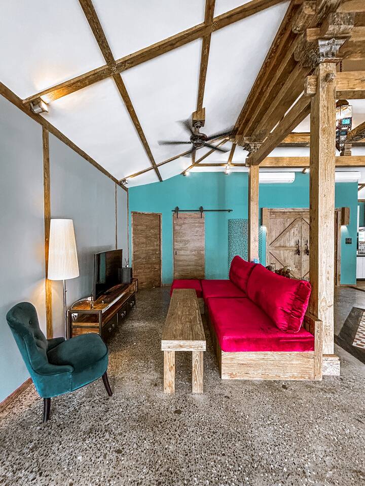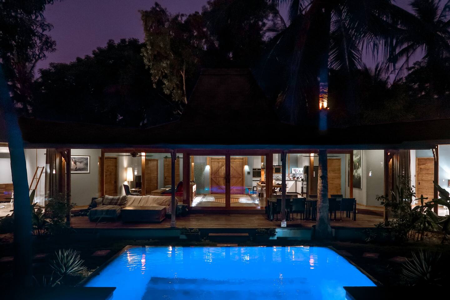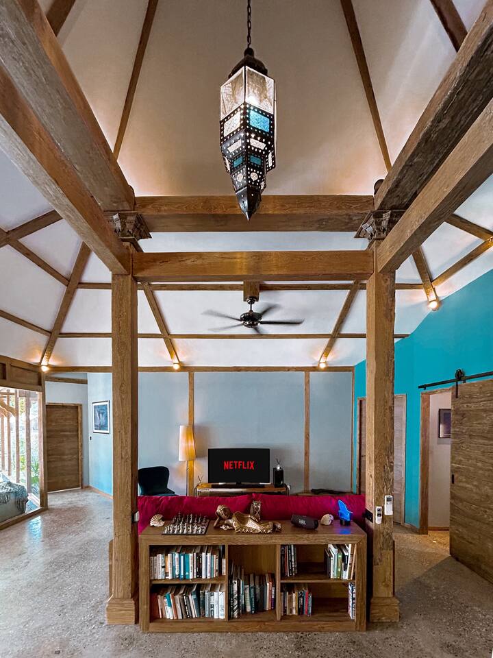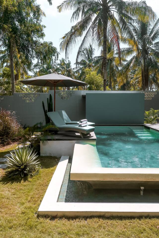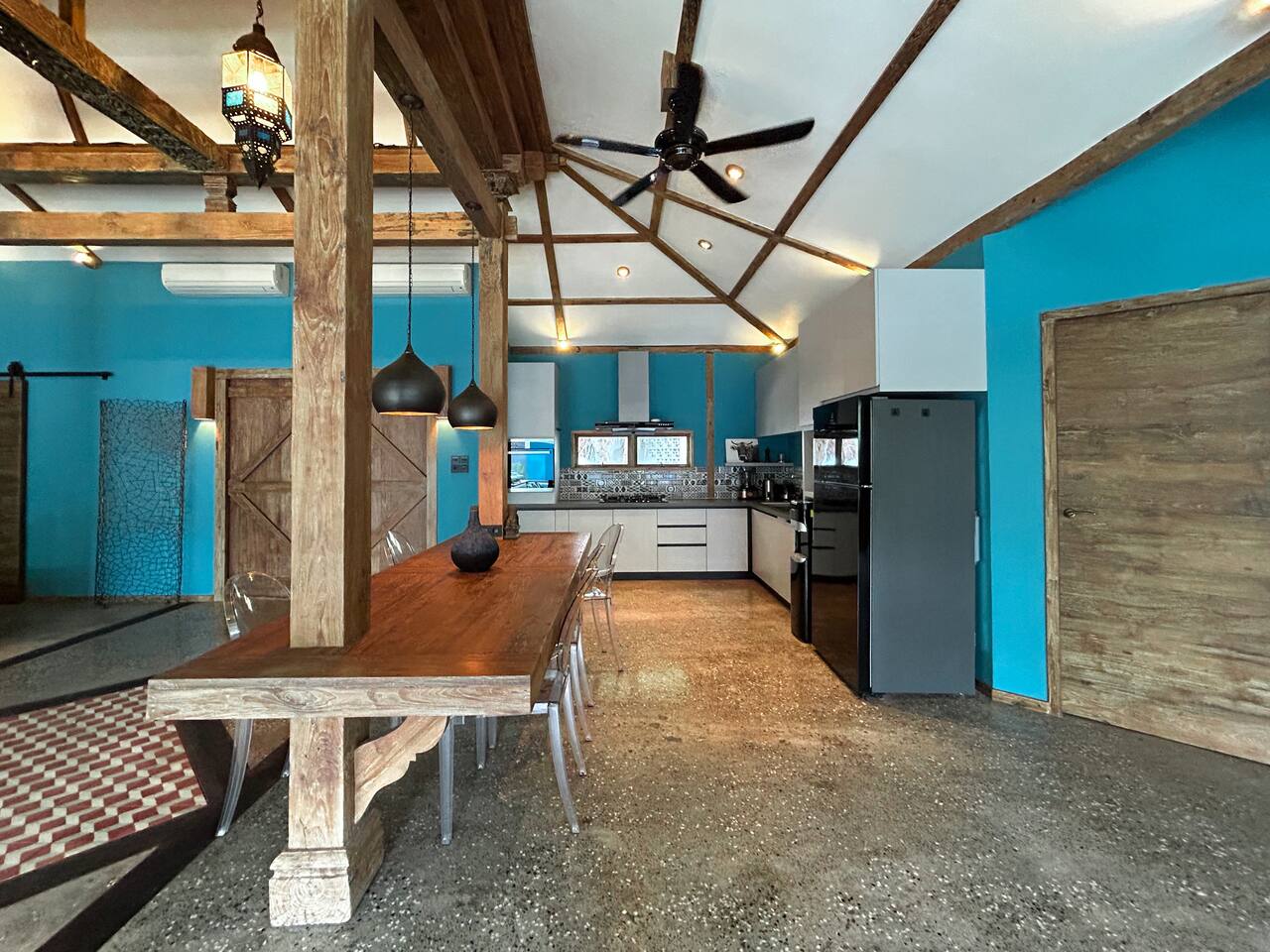 Welcome to Villa Harimau. This beautifully repurposed 3-bedroom Joglo house offers the best of both tropical and modern living. Joglo houses showcase the rich cultural heritage and Experience the unique charm of Javanese architecture, where distinctive design meets deep cultural symbolism – a treasured part of Indonesia's rich history. The villa is nestled in a lush tropical garden, offering a serene and relaxing atmosphere. A highlight of the property is the overflow pool, blending effortlessly with the surrounding greenery – the perfect place to cool off and unwind. Enjoy the following during your stay: 🛏️ Two spacious bedrooms with king-size beds and garden views. 🚿 Two ensuite bathrooms with walk-in rain showers. 🛏️ One bedroom with two single beds – great for kids or friends. 🍳 Fully equipped kitchen for home-cooked meals. ❄️ Indoor living and dining area with powerful AC for maximum comfort. 🌴 Outdoor dining area for those breezy island evenings. Breakfast is available at an additional charge – feel free to ask about the options!